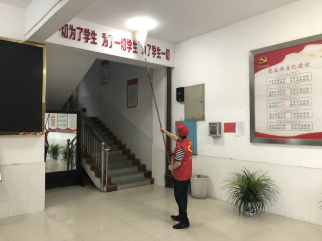 活动中,党员志愿者们拿着扫把、小铲子、夹子、抹布等工具,攻克卫生死角、难点,铲除楼道“牛皮癣”广告,清理楼道乱堆乱放,疏通校园排水沟渠,对各个区域进行清扫、保洁。用实际行动传递和践行着志愿精神,形成了人人学志愿者、人人做志愿者的良好氛围,以实际行动弘扬社会正能量。
